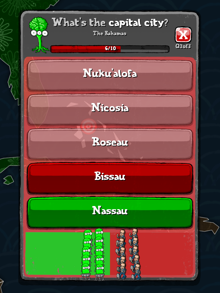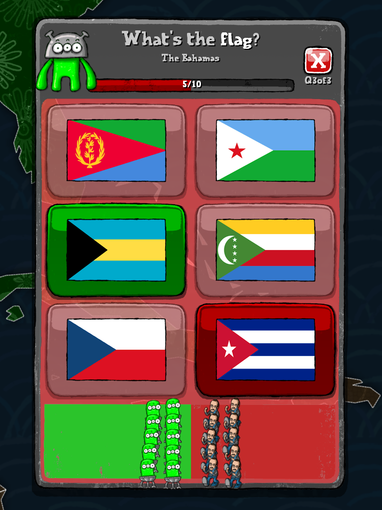 Inquisition Earth! is a geography quiz game with a game-like structure and friendly presentation.Unlike a school test, Inquisition Earth! has a style that engages the whole family and an immersive campaign that stores all of your progress, so a few minutes each day builds up to greater geography knowledge (and world domination!).